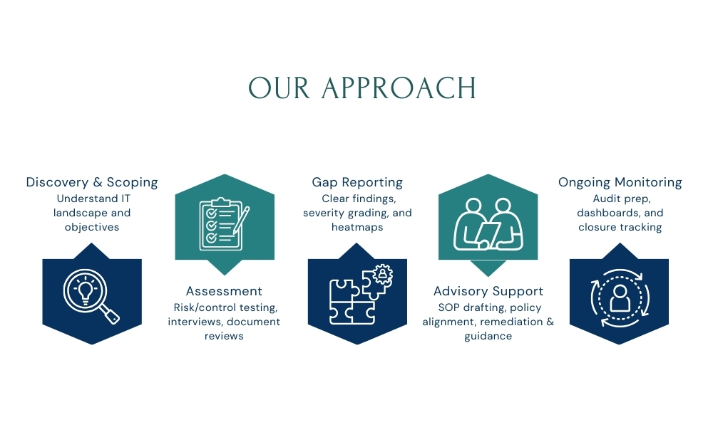 From ITGC reviews and application control testing to cloud security assessments and cybersecurity maturity evaluations, our cyber security risk advisory team delivers tailored solutions that bridge compliance mandates with operational resilience, empowering CIOs, CISOs, and audit teams with real-time visibility and actionable roadmaps.